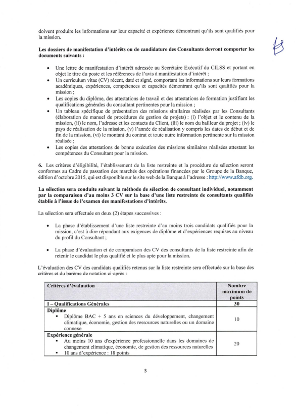- Une lettre de manifestation d’intérêt adressée au Secrétaire Exécutif du CILSS et portant en objet le titre du poste et les références de l’avis à manifestation d’intérêt ;