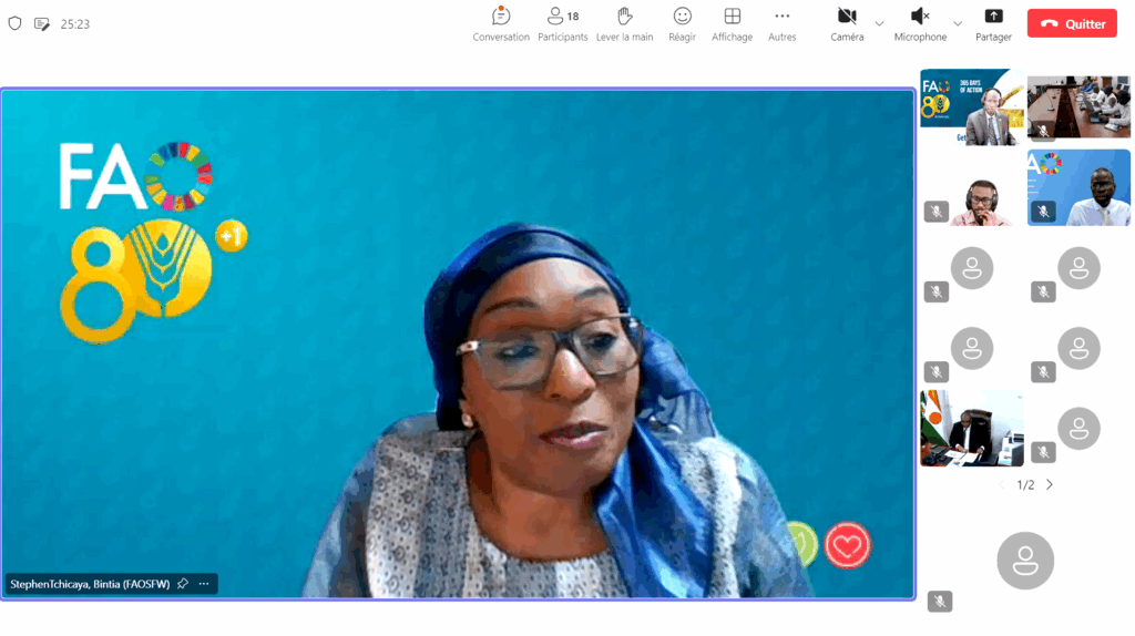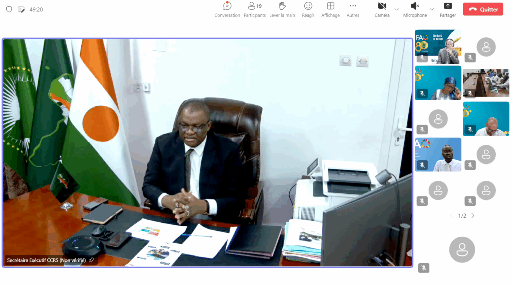 Le Secrétaire Exécutif de la Commission Climat pour la Région du Sahel (CCRS), Son Excellence Monsieur Issifi Boureima, a eu ce mercredi 25 février 2026 une réunion virtuelle avec la Coordonnatrice sous-régionale de l’Organisation des Nations Unies pour l’alimentation et l’agriculture (FAO) pour l’Afrique de l’Ouest, Mme Stephen-Tchicaya.